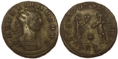 Obv-IMP AVRELIANVS AVG Radiate, draped bust right.