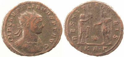 Obv-IMP C AVRELIANVS PF AVG Radiate, cuirassed bust right.