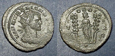 Obverse-IMP AVRELIANVS AVG Bust type A, C, F Reverse-CONCORD LEGI Concordia standing left between four standards.