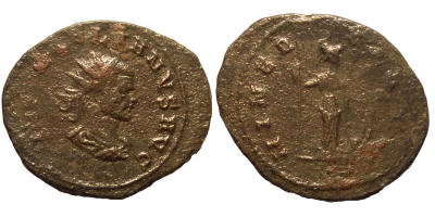 Obverse-IMP AVRELIANVS AVG Bust types A*.F*.N. V. Reverse-MINERVA AVG Minerva standing right or left, holding spear and leaning on shield.