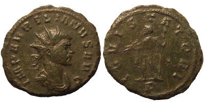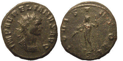 Obverse-IMP AVRELIANVS AVG Bust type A, F. Reverse-IOVI STATORI Jupiter standing left, holding thunderbolt and sceptre.